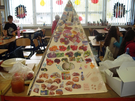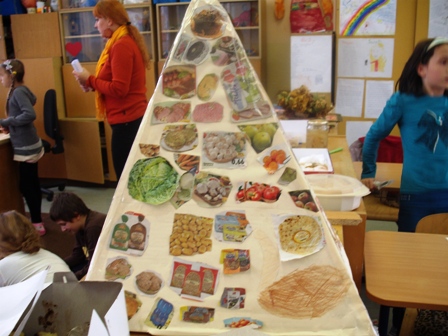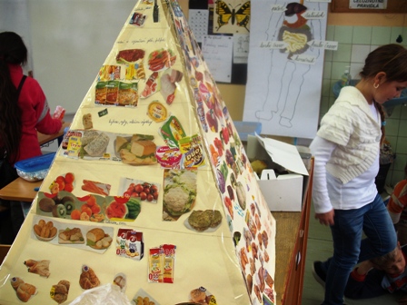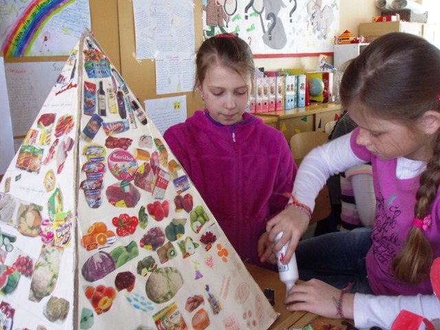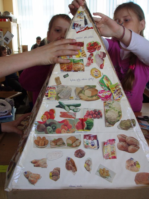 Vytvorenie pyramíd - každá skupina vytvorí časť, (z kartónu a obrázkov), priestorovej pyramidy zdravia